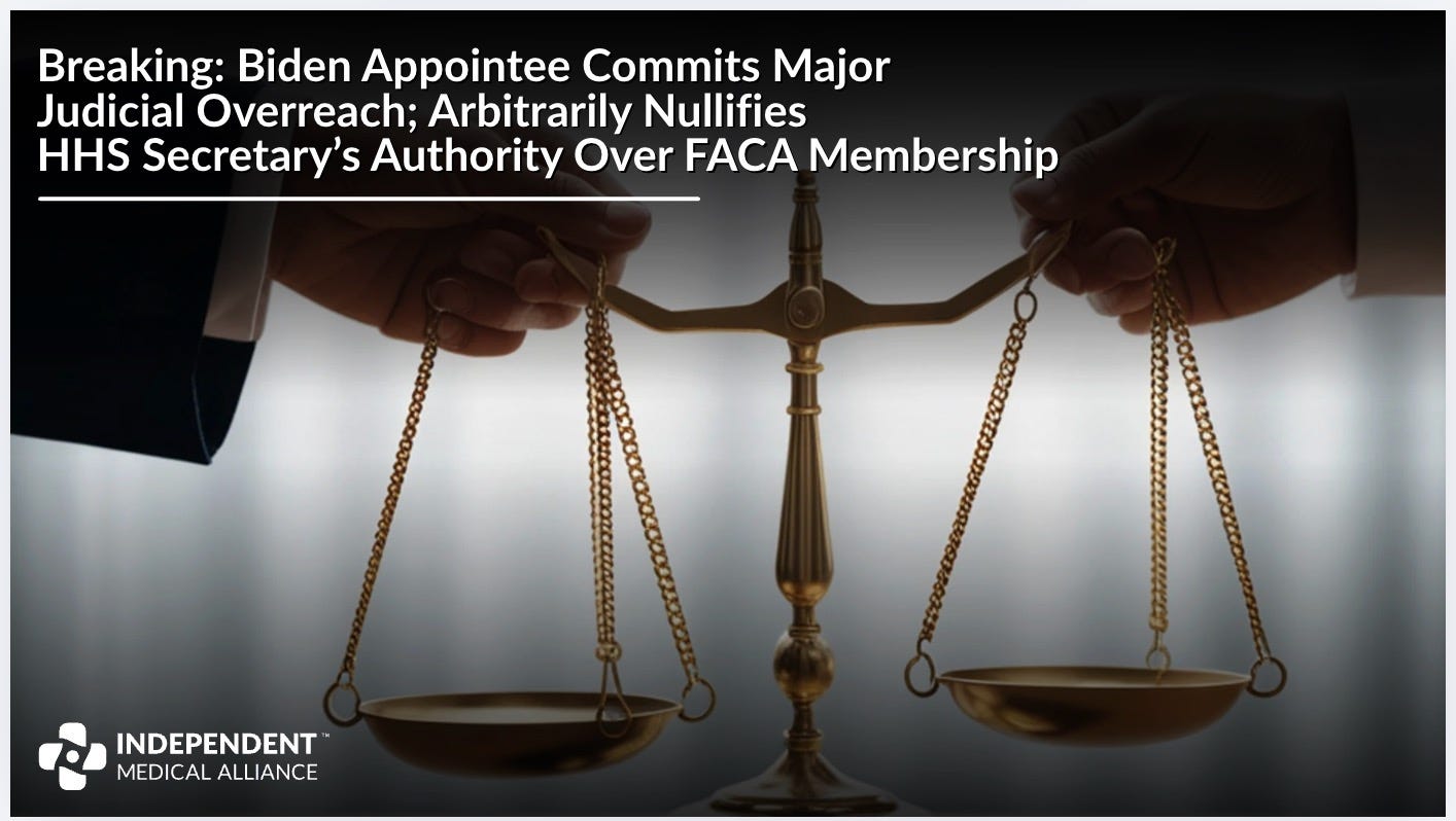 Breaking: Biden Appointee Commits Major Judicial Overreach; Arbitrarily Nullifies HHS Secretary’s Authority Over FACA Membership