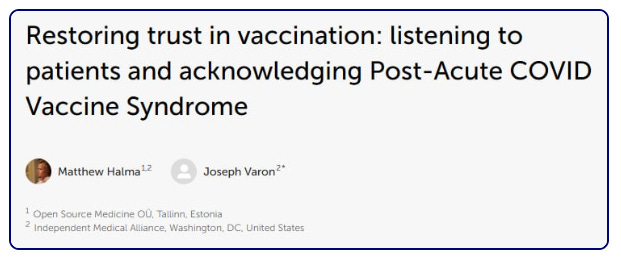 Restoring trust in vaccination: listening to patients and acknowledging Post-Acute COVID Vaccine Syndrome Authors: Matthew Halma, Dr. Joseph Varon