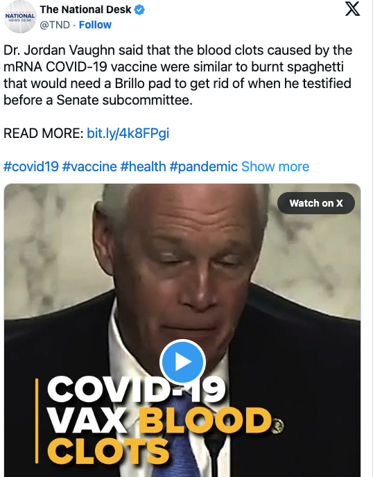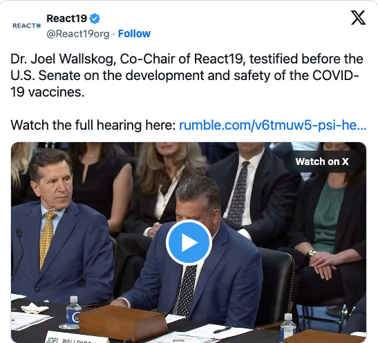 For the vaccine-injured, the system’s failure to even acknowledge their existence—let alone offer help—has been both painful and, for many, career-ending. React-19’s Dr. Joel Wallskog testified before the Senate about his own experience with vaccine injury and the stunning lack of support at every level: