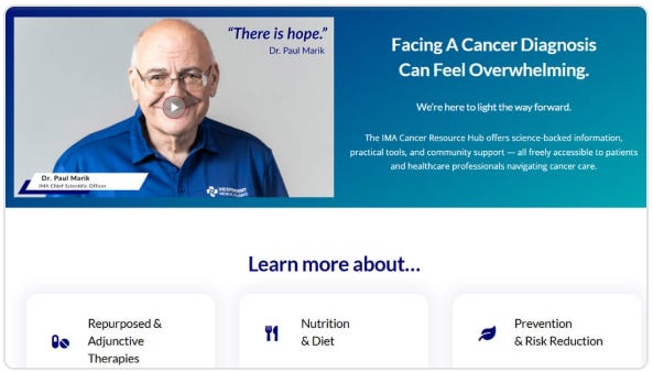 Now it is even easier to share these amazing free resources with people that mention a cancer diagnosis because it’s all in one place: the IMA Cancer Resource Hub… everything that someone with a cancer diagnosis needs in one place, from the protocols and treatment guides to inspiring webinars and survivor stories.
