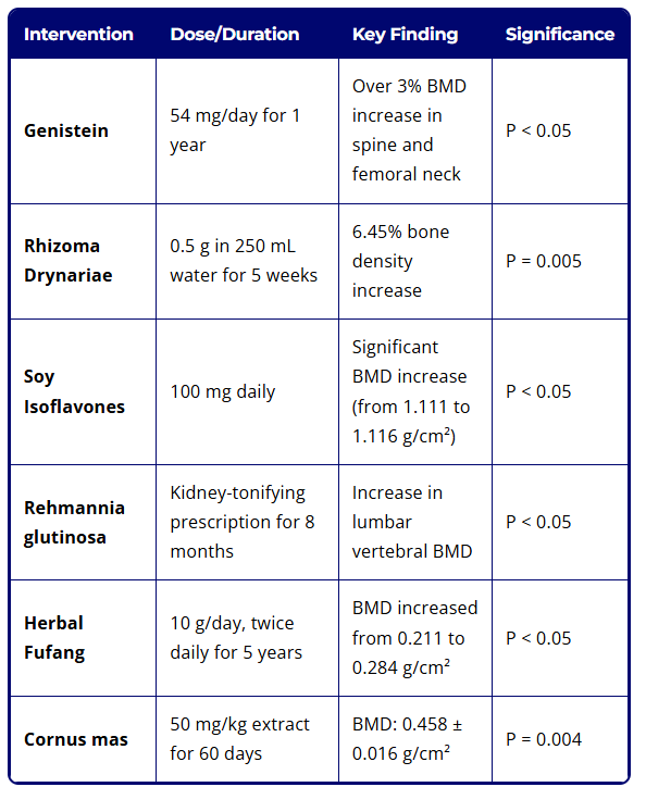 📊 Table 2: Herbal and Phytoestrogen Interventions for Bone Health