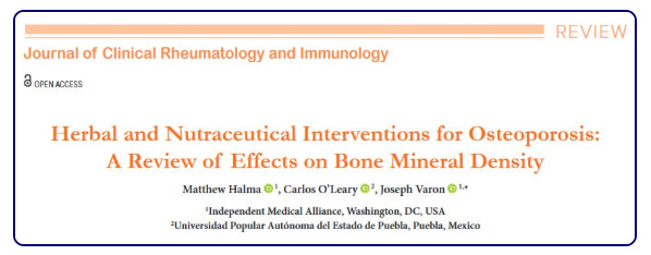 Herbal and Nutraceutical Interventions for Osteoporosis: A Review of Effects on Bone Mineral Density – Authored by Matthew Halma, Carlos O’Leary, and Joseph Varon